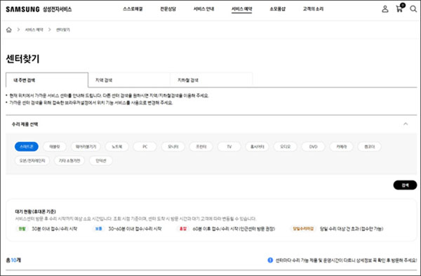삼성전자 서비스 사이트(https://www.samsungsvc.co.kr/reserve/searchCenter)에서 가까운 서비스센터 위치를 미리 확인하면 더욱 편리합니다.